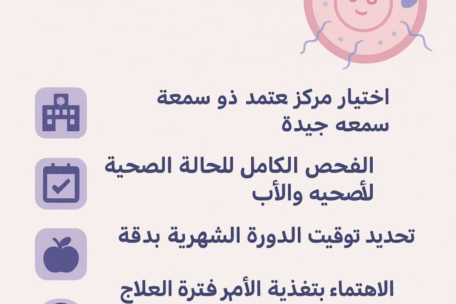 - الحرارة الشديدة:تجنب الاستحمام بالماء الساخن جداً، والتعرض للساونا، وحمامات الشمس، حيث يمكن أن تؤثر على ثبات الأجنة.